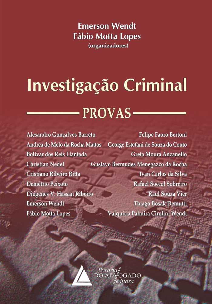 Livro Investigação Criminal: Provas, também organizado em conjunto com o Prof. e Dr. Fábio Motta Lopes, Delegado de Polícia Civil do Rio Grande do Sul, com artigos de 16 artigos: